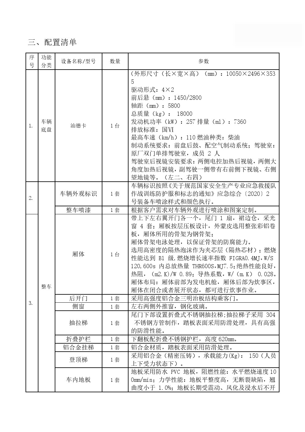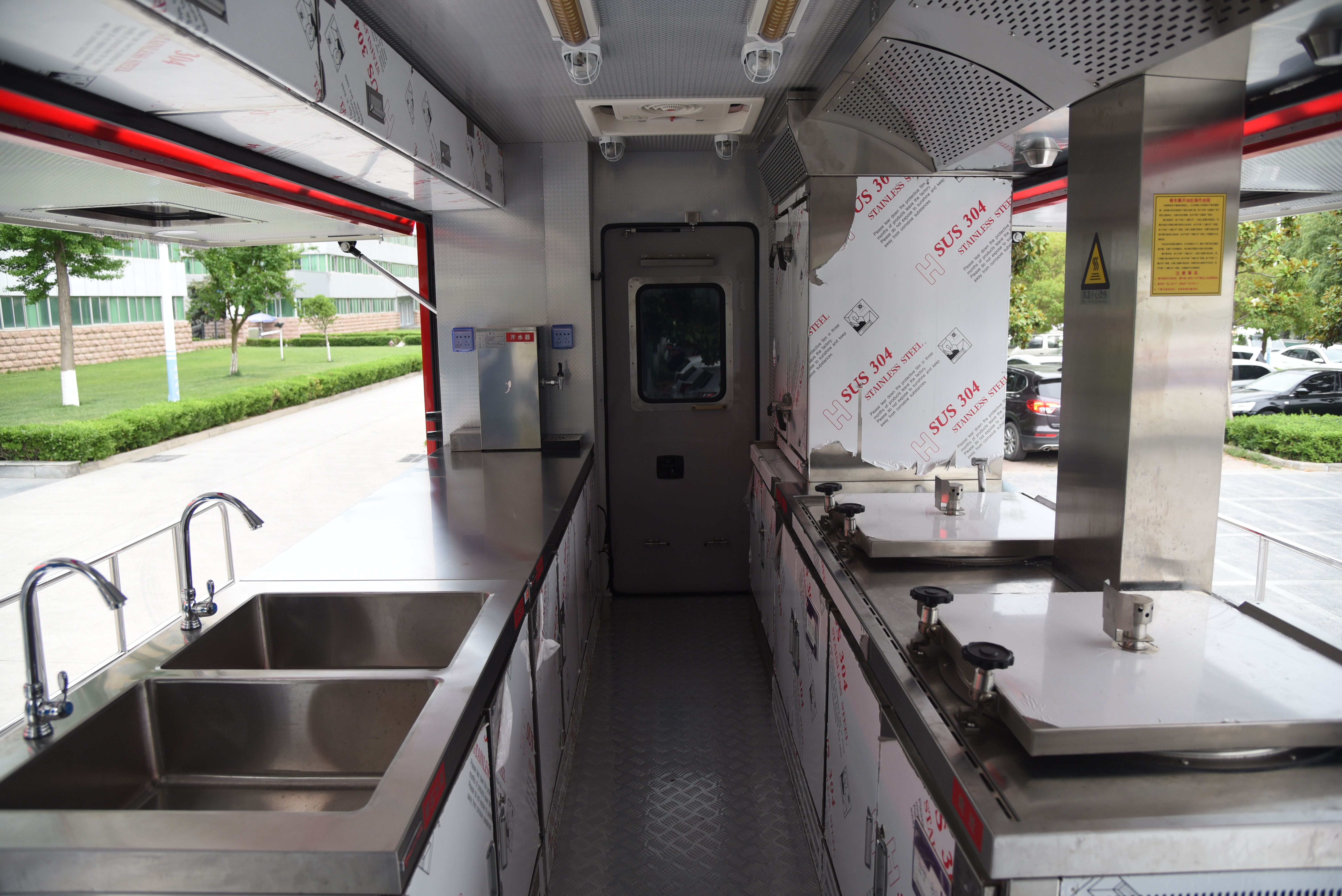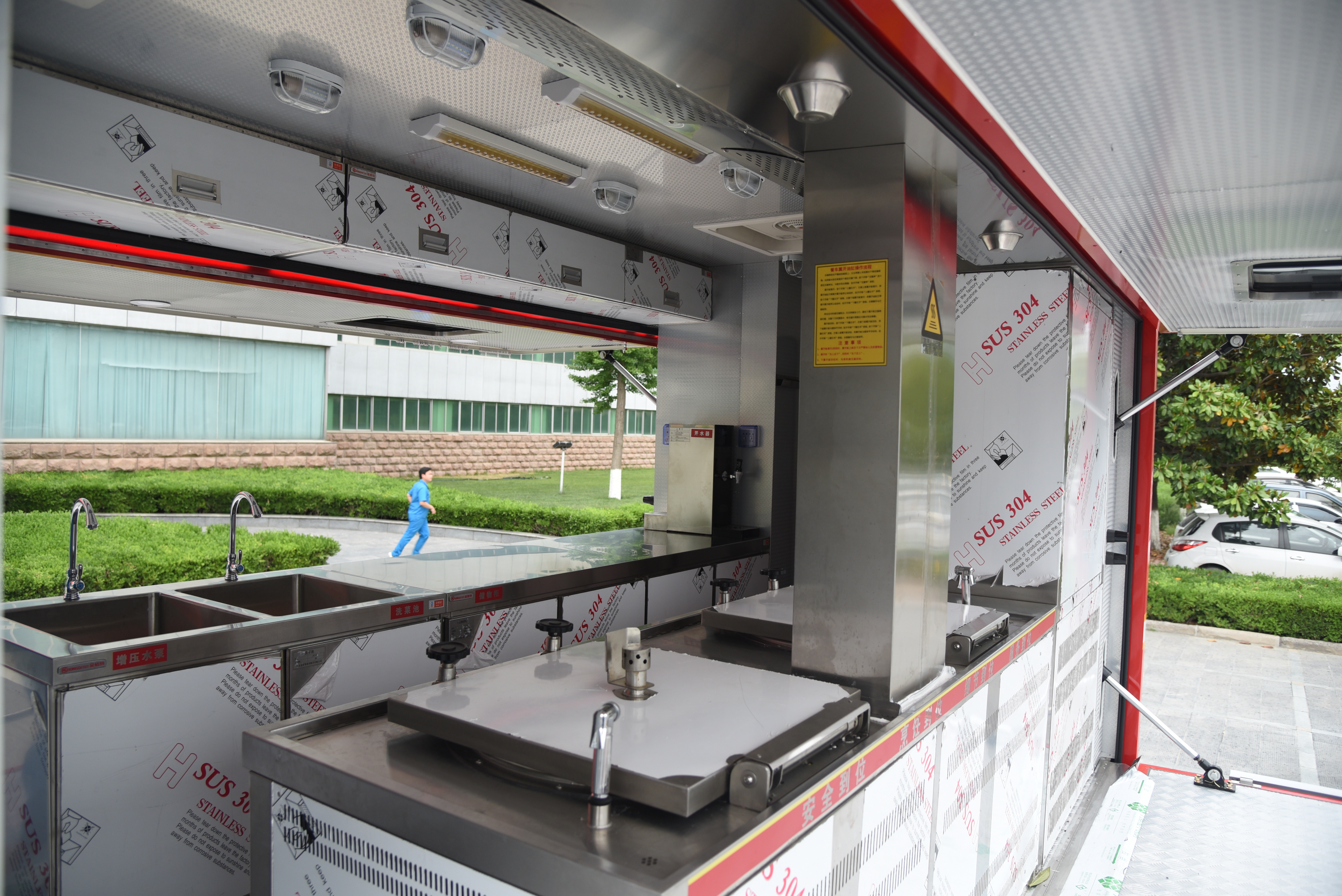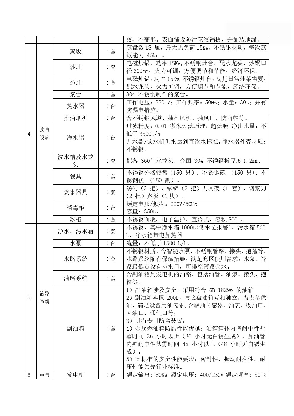 主要裝備有各類炊事設(shè)備,滿足50-300人用餐需求,由保溫廂體、炊事設(shè)備、灶具設(shè)施、水存儲(chǔ)、電氣控制系統(tǒng)、水路系統(tǒng)、油路系統(tǒng)以及就餐區(qū)等組成;擁有功能齊備的食品制作設(shè)備和相應(yīng)的操作空間,完全適用于野外炊事作業(yè)。